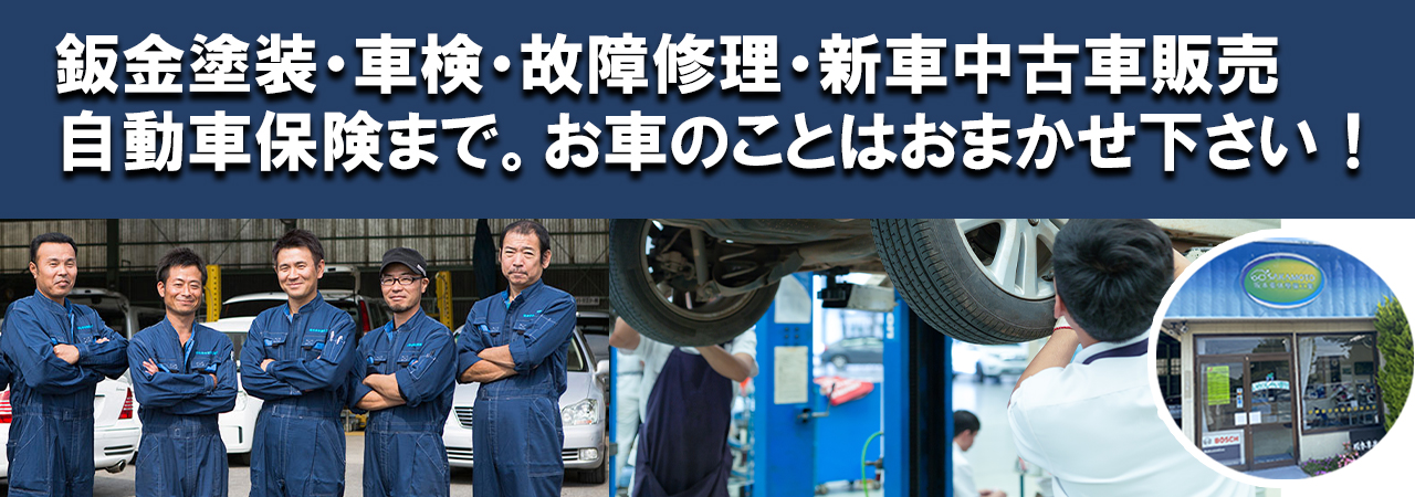 坂本車体整備工業は、鈑金塗装をメインに自動車の購入から車検・整備、修理、保険の見直しまで、車のトータルショップです。