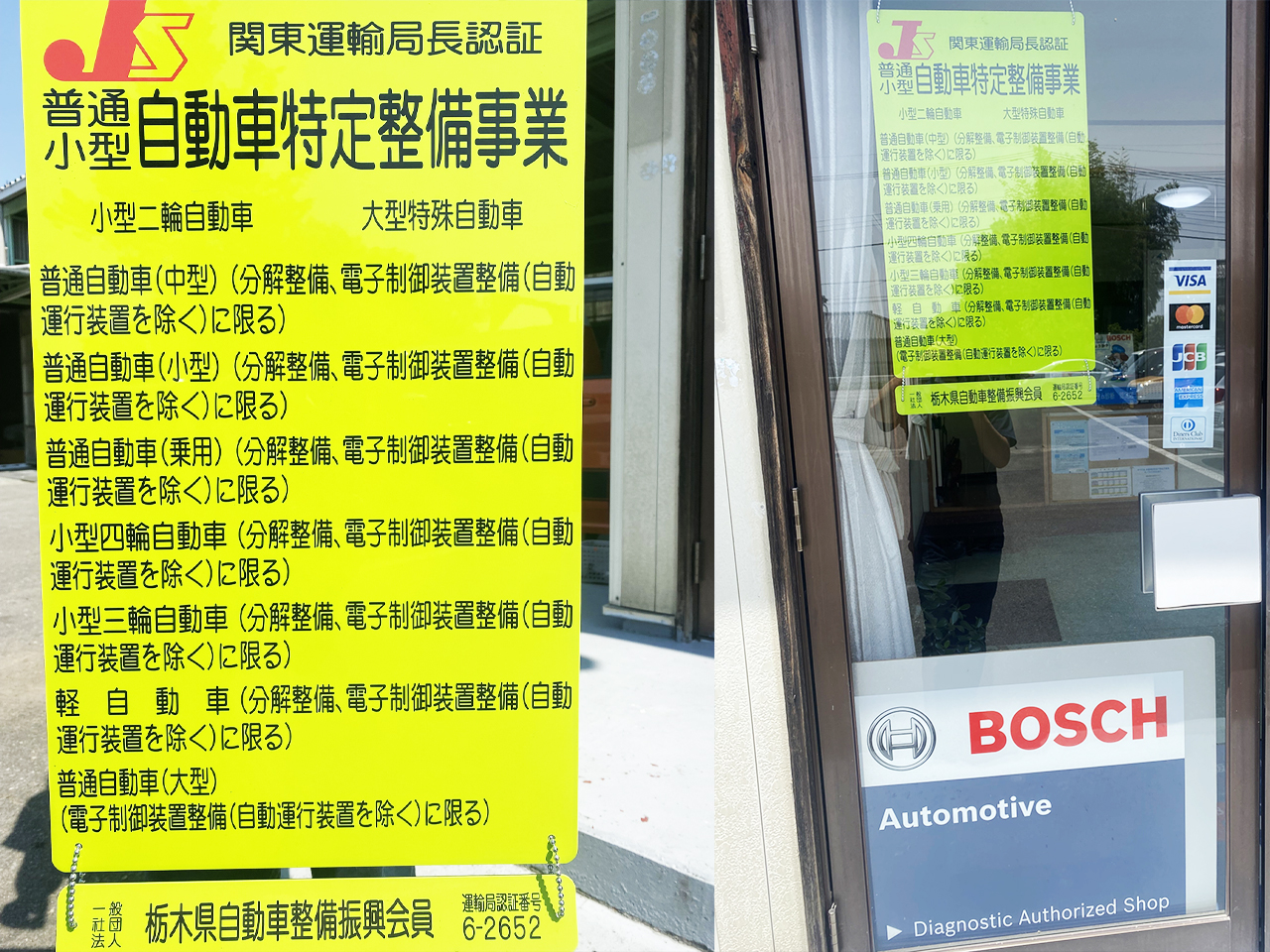 | 業務内容 | 車検整備・一般整備・鈑金修理・定期点検・新車・中古車販売・自動車保険 |