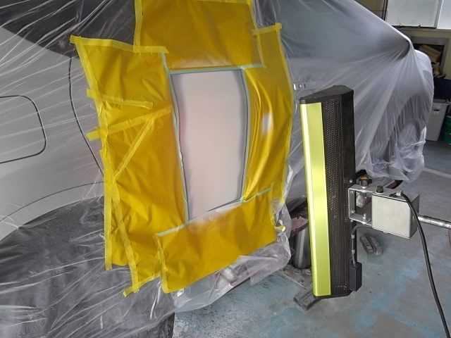 車体に合わせて塗料の色を調整します。艶を出すための下塗りをしっかり施し、塗装箇所以外に塗装が付着しないようマスキングした上で塗装します。